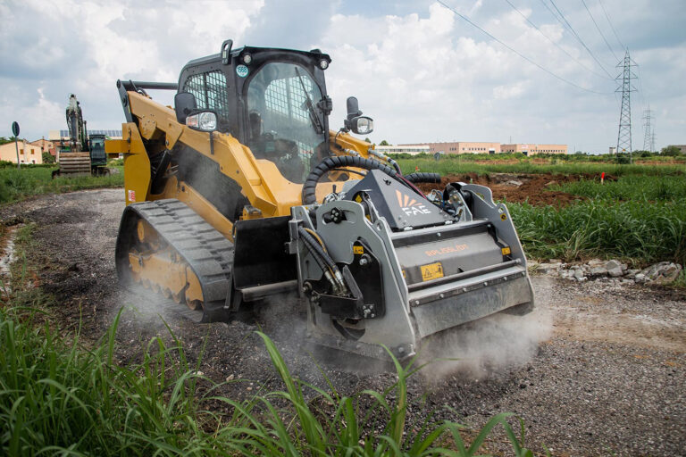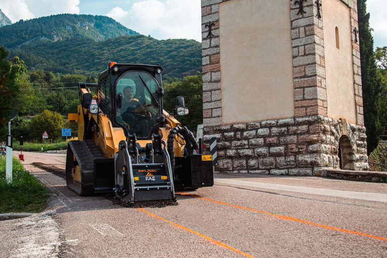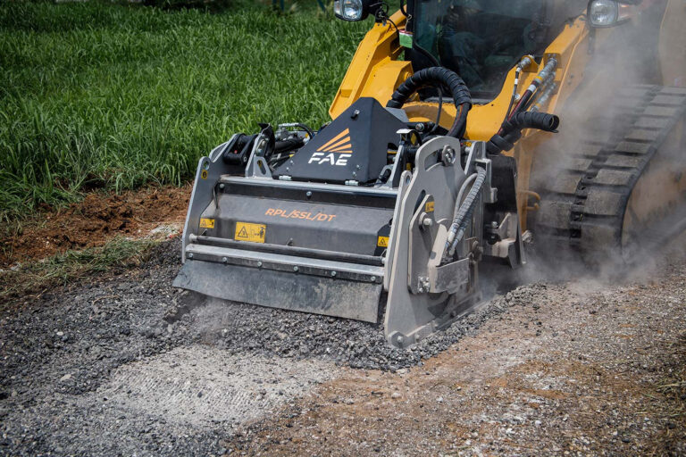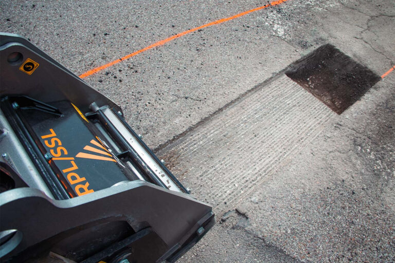 The RPL/SSL is a road planer for 60 to 135 hp skid steers which is capable of milling down to a depth of 17 cm. The dual transmission version is compatible with 90- to 135-hp skid steer loaders to mill up to 14 cm deep. The RPL/SSL line is ideal for road preparation before adding a new layer of asphalt or concrete, or to simplify excavation operations. Self-leveling skids and tilt ensure optimal results. Operational precision is ensured by the hydraulic drive system — which makes it possible to work right up against a wall on the right or left side — as well as practical depth and cutting indicators. The line is completed with special teeth designed specifically for asphalt and concrete road surfaces.