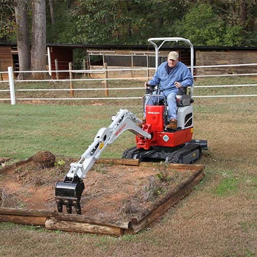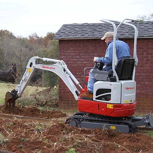 The TB210R features many upgrades that will enhance operator comfort, efficiency, and serviceability. To improve fine control and reduce fatigue, the TB210R now features pilot operated joystick controls that are low effort and responsive to operator input. A hydraulically retractable track frame and the addition of a foldable ROPS frame allow it to easily pass through a standard doorway. To reduce the likelihood of rear swing impacts, the TB210R also features a short tail swing design.